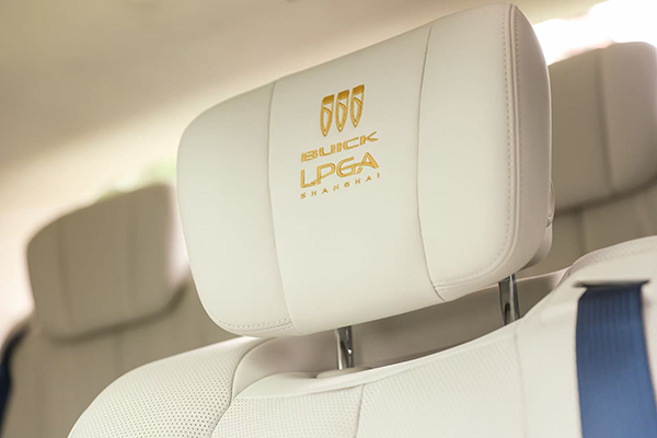 二排云感礼宾座椅头枕以刺绣工艺呈现出LPGA高尔夫球赛事定制图案,精致而内敛