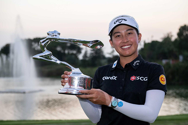 现世界排名第一的泰国选手吉诺-提提库(Jeeno Thitikul)捧得别克女神冠军奖杯