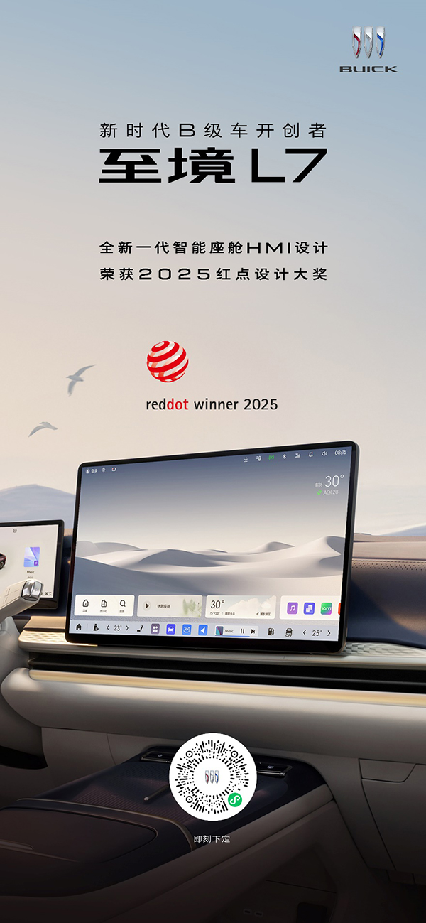 胶东在线10月20日讯 近日,新时代B级车开创者——至境L7再度迎来高光时刻:其智能座舱人机界面(Human Machine Interface/HMI)设计在2025年德国红点设计大奖(Red Dot Design Award)评选中斩获“品牌与传达设计”大奖(Brands & Communication Design),彰显了这一国际权威奖项对别克在智能座舱领域创新融合设计美学与智能体验的高度认可。