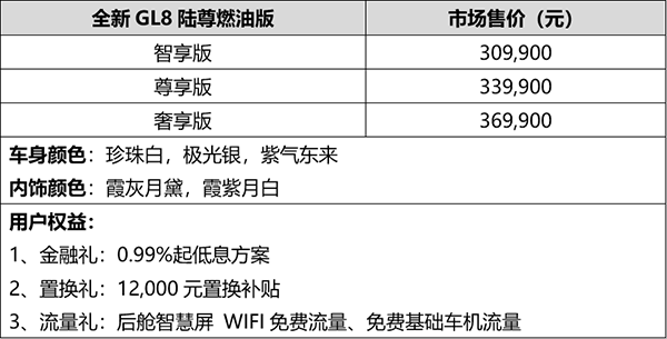 即日起,用户可通过别克官网、iBuick App、别克微信小程序或别克经销商店等渠道下定购买全新GL8陆尊燃油版,可享金融礼、置换礼、流量礼多重尊享礼遇。